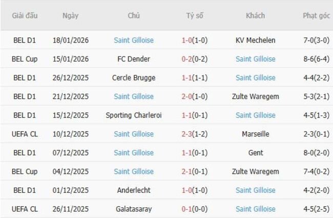 Phong độ của Saint Gilloise