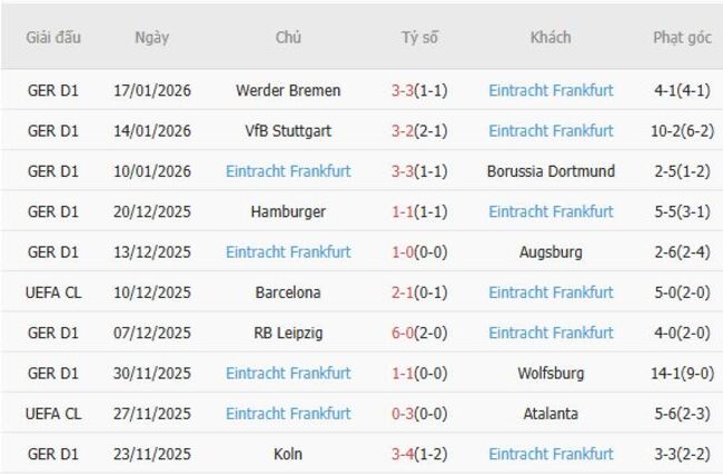 Chiến dịch Champions League của Frankfurt đã không đạt được kỳ vọng, chỉ giành được 4 điểm sau 6 trận đấu vòng bảng với 1 chiến thắng, 1 trận hòa và 4 trận thua, trong đó có những thất bại nặng nề như trận thua 5-1 trước Atletico Madrid và Liverpool, và trận thua 3-0 trước Atalanta BC, cho thấy những điểm yếu phòng ngự dai dẳng.