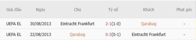Thành tích đối đầu quá khứ giữa Qarabag vs Eintracht Frankfurt