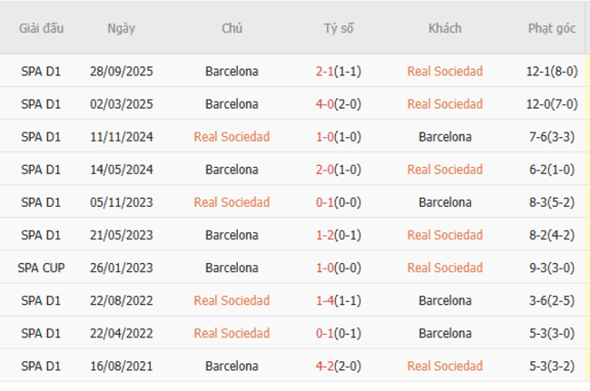 Thành tích đối đầu quá khứ giữa Real Sociedad vs Barcelona